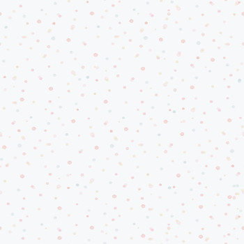 Vliestapete, Motive aus farbigen Punkten/Tupfern in Rosa-, Blau- und Gelbtönen, sehr feine Stoffstruktur.