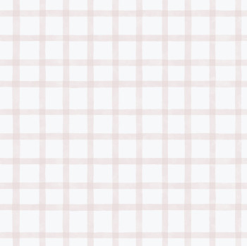 Vliestapete, unregelmäßiges rosa-weißes Karomuster, sehr feine Stoffstruktur.