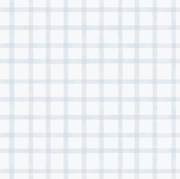 Vliestapete, unregelmäßiges blau-weißes Karomuster, sehr feine Stoffstruktur.