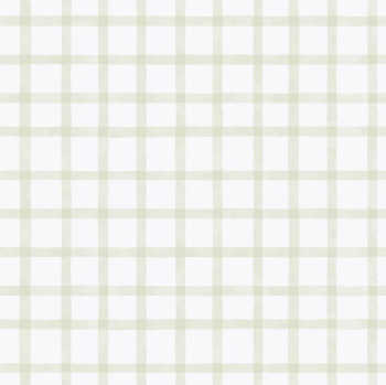 Vliestapete, unregelmäßiges grün-weißes Karomuster, sehr feine Stoffstruktur.