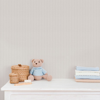 Vliestapete, grau-weiße Streifen, sehr feine Stoffstruktur.