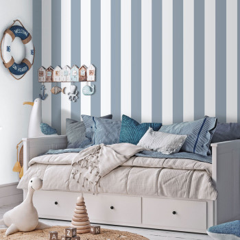 Vliestapete, blau-weiß, Streifen, 293-2, Enzo, ICH Wallcoverings