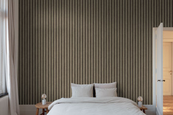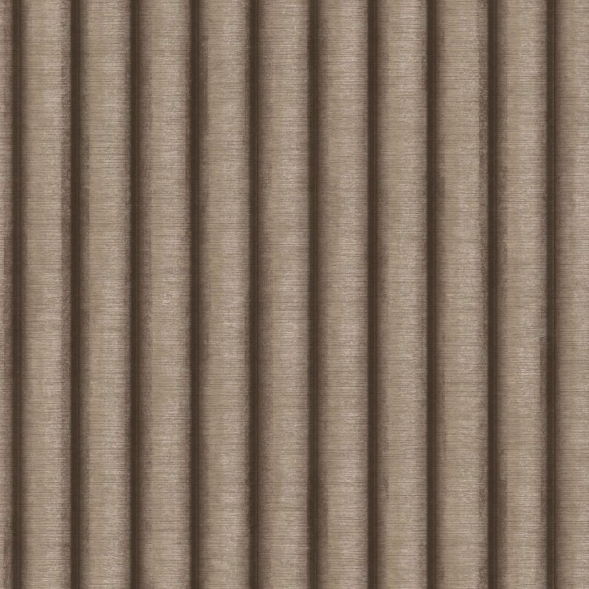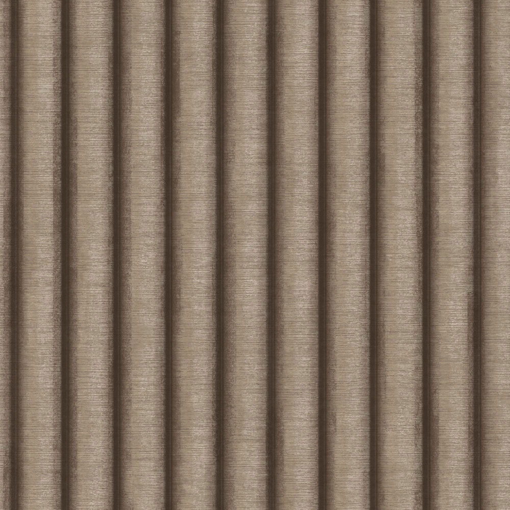 Vliestapete mit Vinyloberfläche, braune Streifen, teilweise metallisch halbglänzend.
