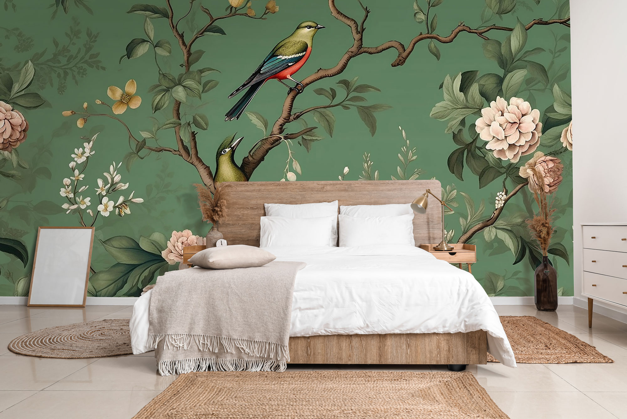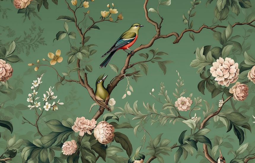 Vlies-Fototapete nach Maß, Blühende Zweige mit Vögeln, 10058, Vavex
