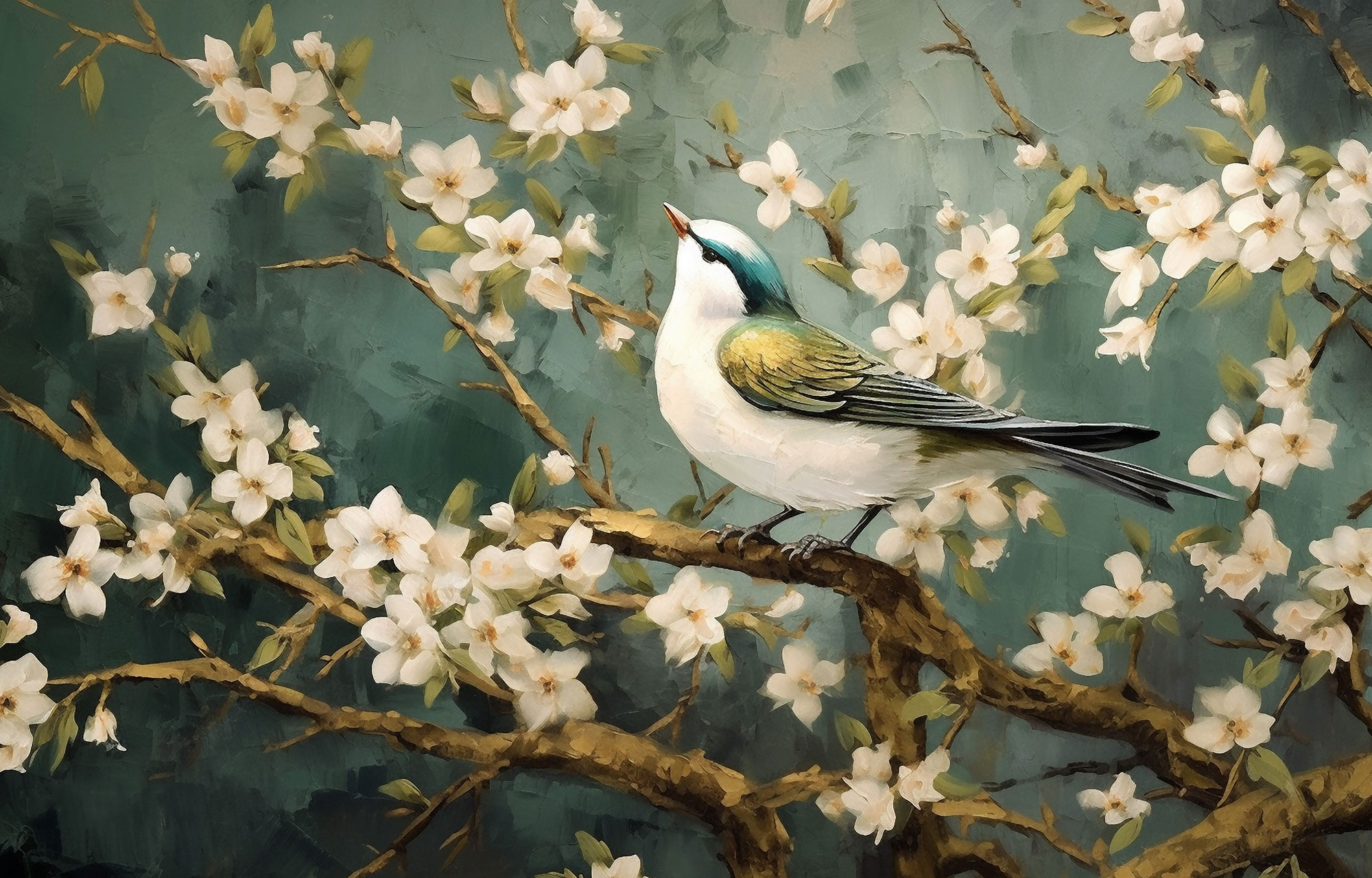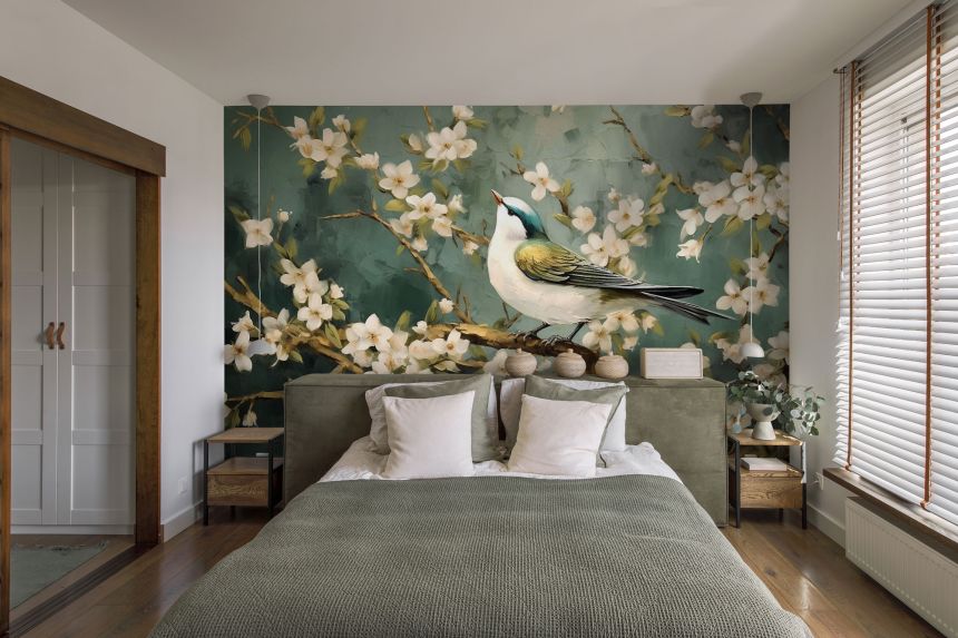 Vlies-Fototapete nach Maß, Blühender Zweig mit Vogel, 10063, Vavex