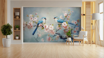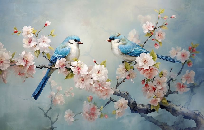 Vlies-Fototapete nach Maß, Blühender Zweig mit Vögeln, 10064, Vavex