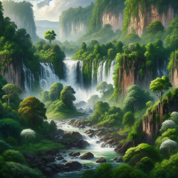 Vlies-Fototapete nach Maß, Wasserfall im Wald, 10078, Vavex