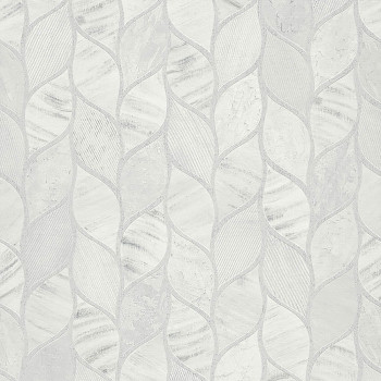 Abwaschbare, grauweiße Vliestapete mit Blattmuster.