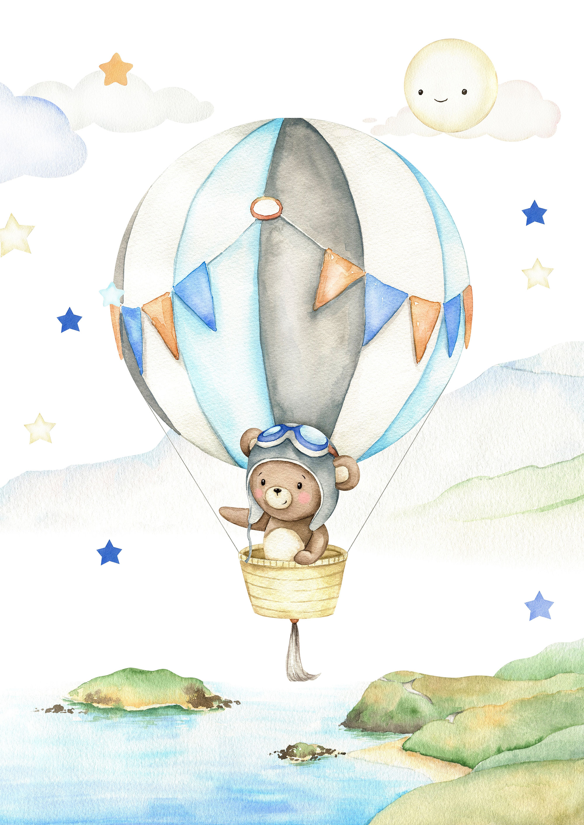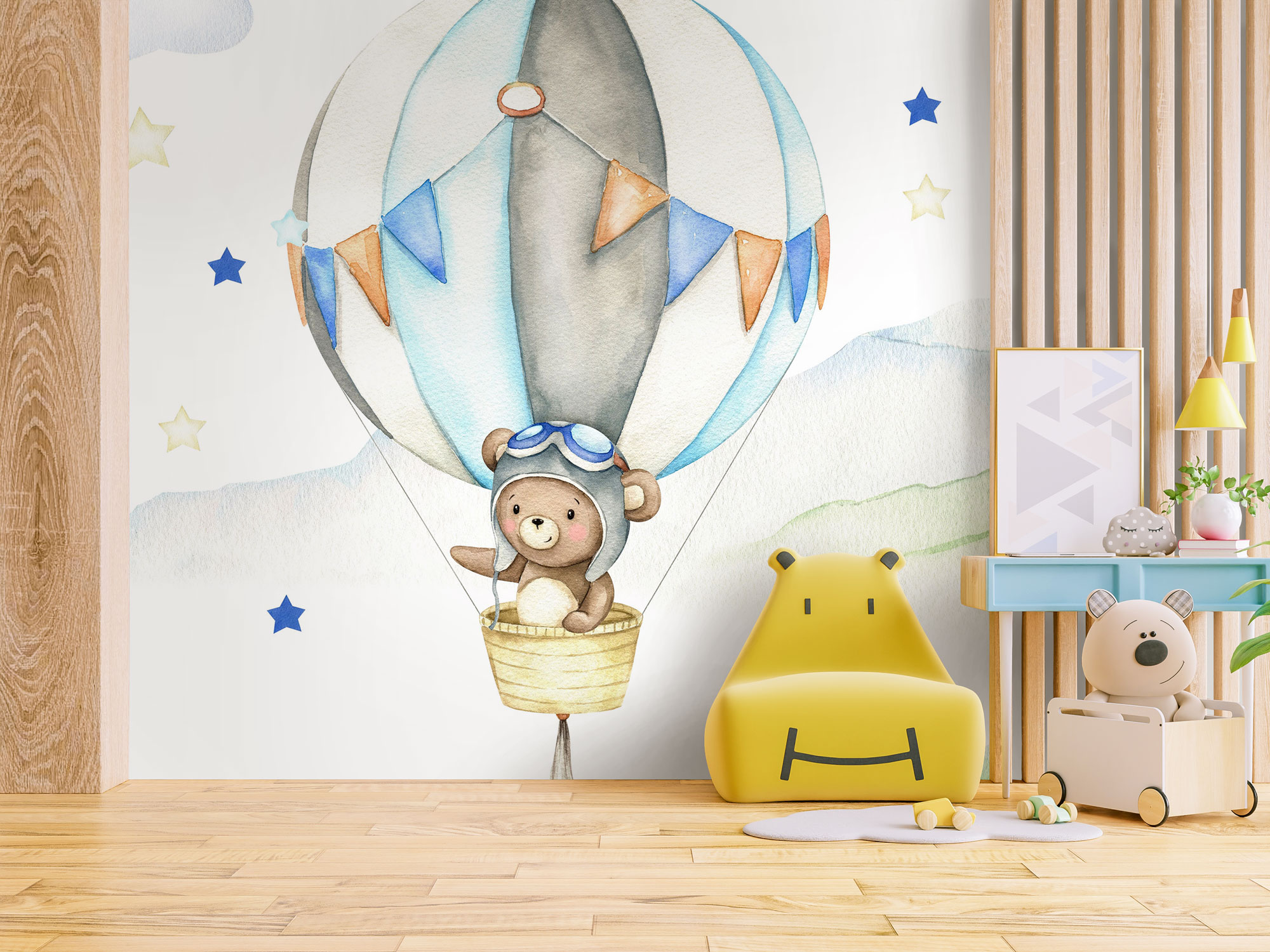 Vlies-Fototapete nach Maß, Tiere, Teddybär im Luftballon, 10107, Vavex
