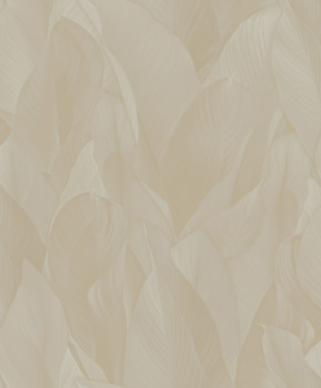 Markant geprägte Vliestapete mit Vinyloberfläche, Blättermotiv in Beigetönen.