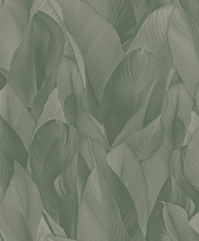 Markant geprägte Vliestapete mit Vinyloberfläche, Blättermotiv in Grüntönen.