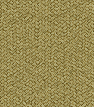 Luxuriöse Vliestapete mit Vinyloberfläche, die Textur erinnert an eine gewebte Matte aus Naturmaterial, in Grün- und Beigetönen.