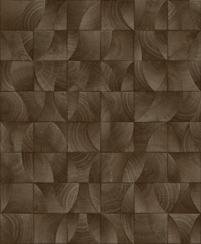 Luxuriöse Vliestapete mit Vinyloberfläche, grobe Textur imitiert Holzvertäfelung in Brauntönen.