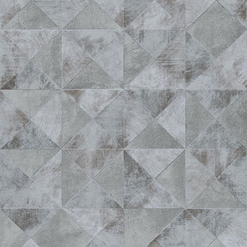 Vlies, grau-silber, Tapete mit abwaschbarer Vinyloberfläche mit geometrischem Muster.