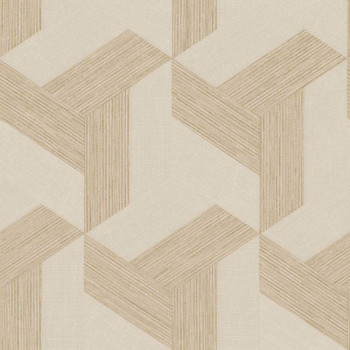 Geometrische Vliestapete mit Vinyloberfläche, Beige-Ocker-Töne, fein geprägte Struktur, goldbeige Details.