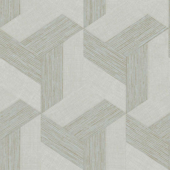 Geometrische Vliestapete mit Vinyloberfläche, Grautöne, feine plastische Textur, gold-braune Details.