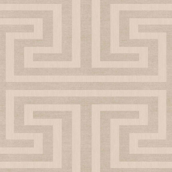 Geometrische Vliestapete mit Vinyloberfläche, grau-ockerfarbige Töne, feine plastische Textur, feine goldene Details.