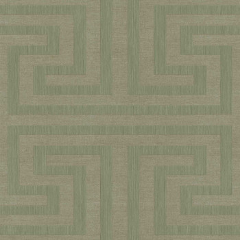 Geometrische Vliestapete mit Vinyloberfläche, grüne Töne, feine plastische Textur, goldene Details.