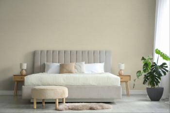 Vliestapete mit Vinyloberfläche, Nachbildung von grobem beigem Stoff.