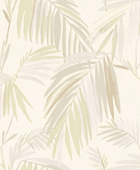 Luxuriöse Vliestapete für die Wand, plastische halbglänzende Palmenblätter, in hellbeigen Farbtönen.
