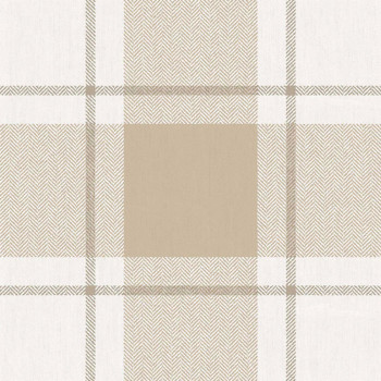Vliestapete mit Vinyloberfläche, Karo-Muster in Beigetönen in Stoffoptik.