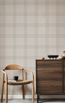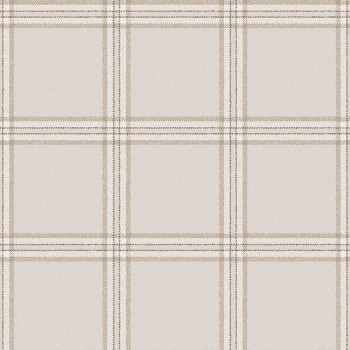 Vliestapete mit Vinyloberfläche, Karo-Muster in Grau-Beigetönen in Stoffoptik.