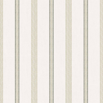 Vliestapete mit Vinyloberfläche, Stoffoptik mit Streifen in Grün- und Hellbeigetönen.