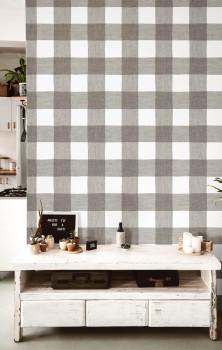 Vliestapete mit Vinyloberfläche, Stoffoptik in Karomuster in Schwarz-Weiß.