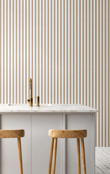 Vliestapete mit Vinyloberfläche, Nachbildung gestreiften Stoffes in Braun- und Weißtönen.