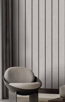Vliestapete mit Vinyloberfläche, Streifen in Grau- und Schwarztönen, Stoffoptik.