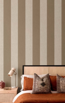 Vliestapete mit Vinyloberfläche, Streifen in Braun- und Grau-Brauntönen, Stoffoptik.