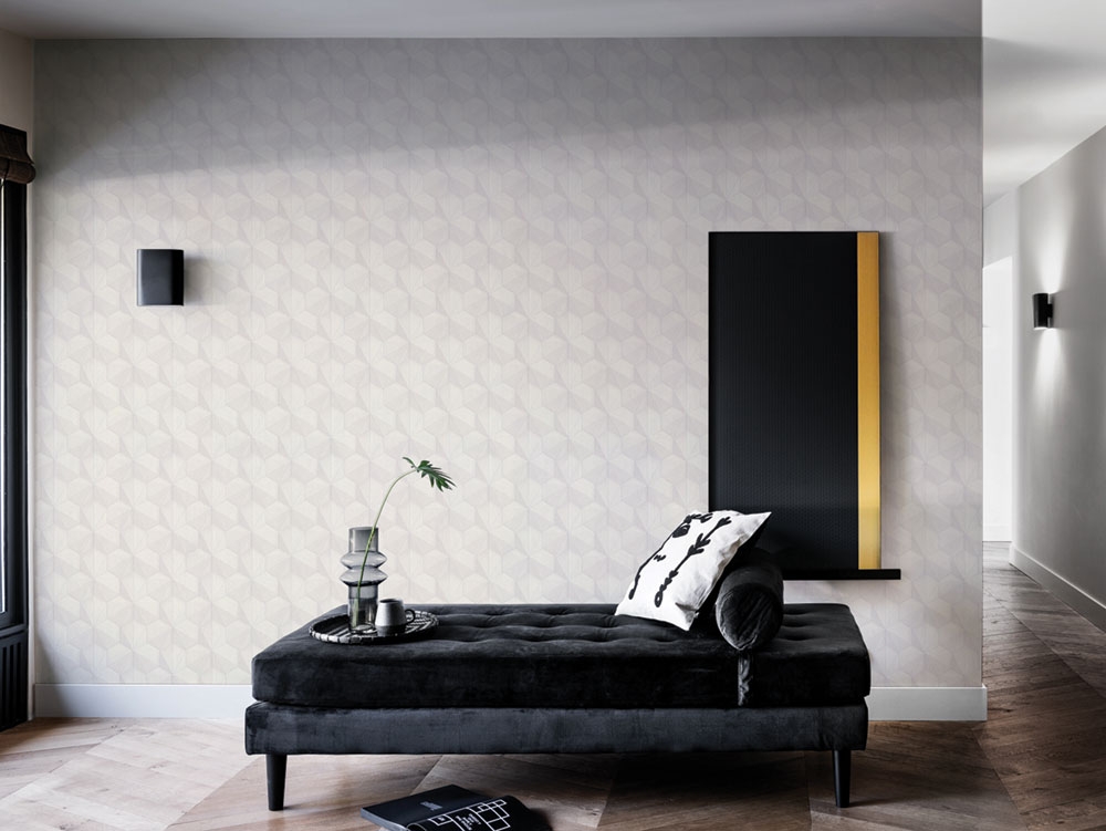 Vlies-, creme, Tapete für die Wand mit 3D-Effekt.