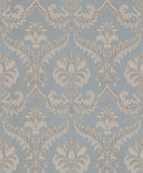 Vliestapete mit Vinyloberfläche, barockes Damastmuster, Grau- und Beigetöne..
