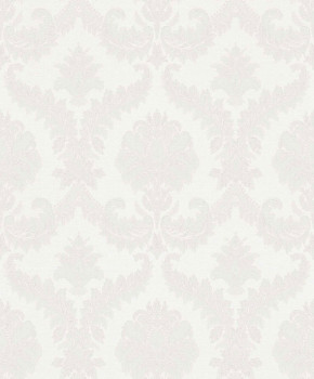 Vliestapete mit Vinyloberfläche, Cremetöne, barockes Damastmuster.