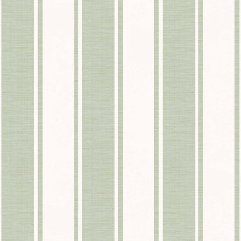 Vliestapete mit Vinyloberfläche, Creme- und Grüntöne, Streifenmuster, Stoffstruktur.