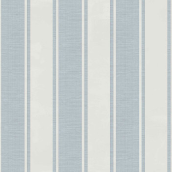 Vliestapete mit Vinyloberfläche, Creme- und Blautöne, Streifenmuster, Stoffstruktur.