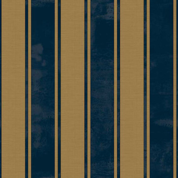 Vliestapete mit Vinyloberfläche, Blau- und Braungoldtöne, Streifenmuster, Stoffstruktur.