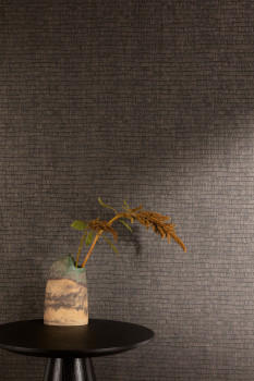 Vliestapete mit Linienmuster, das unregelmäßige horizontale Streifen bildet - Brauntöne, teilweise metallisch halbglänzend.