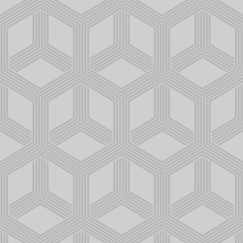 Vlies, grau-silberne Tapete mit Vinyloberfläche, geometrisches Muster.