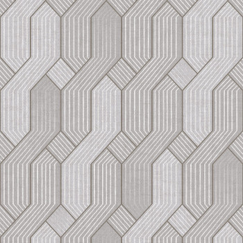 Geometrische Vliestapete mit Vinyloberfläche, Hintergrund in Grautönen, weißen und grauen Linien, silberne Konturen.