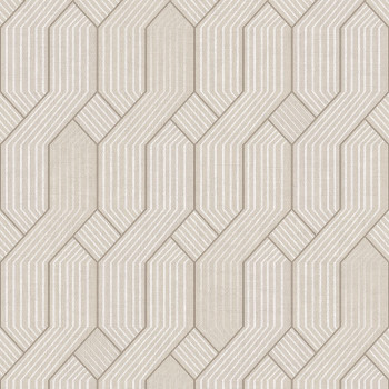Vlies, geometrische Tapete mit Vinyloberfläche, beiger Hintergrund, cremefarbene Linien, goldene Konturen.