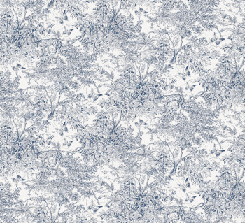 Vliestapete, blau-weißes Leopardenmotiv in wilder Natur.