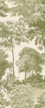 Bildtapete, leicht strukturierte Stoffoptik, romantische Landschaft in Grüntönen.
