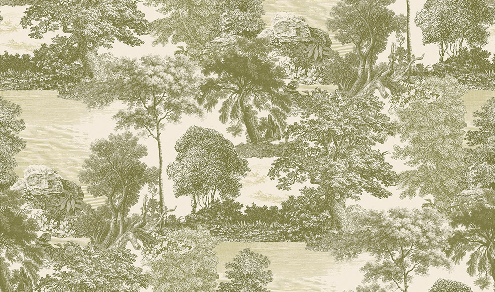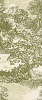 Bildtapete, leicht strukturierte Stoffoptik, romantische Landschaft in Grüntönen.