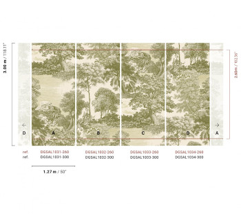 Bildtapete, leicht strukturierte Stoffoptik, romantische Landschaft in Grüntönen.