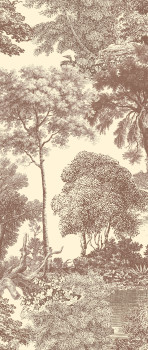 Bildtapete, leicht strukturierte Stoffoptik, romantische Landschaft in Brauntönen.
