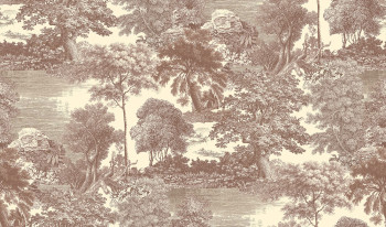Bildtapete, leicht strukturierte Stoffoptik, romantische Landschaft in Brauntönen.