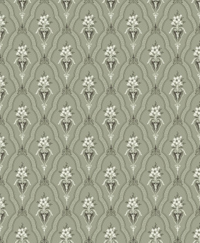 Vliestapete für die Wand, grüner Hintergrund, ornamentales Blumenmuster im Schlossstil.