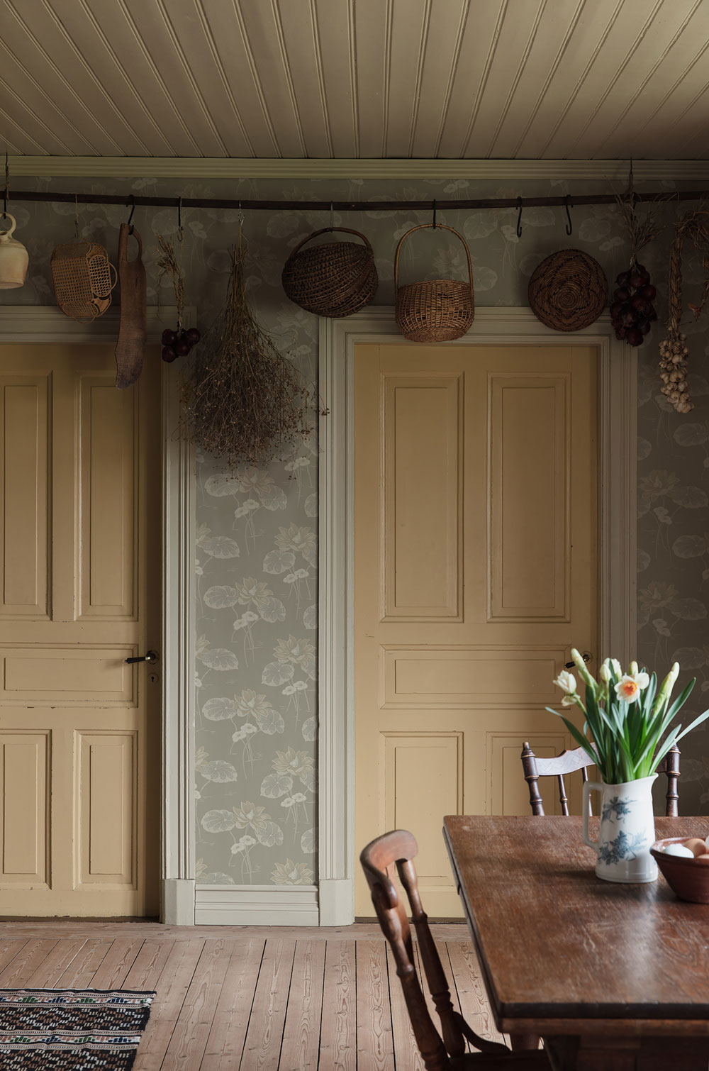 Die Tapetenkollektion Alla Tiders Hus feiert schöne Wohnstile durch die Jahrzehnte. Die Designs sind inspiriert von sechs verschiedenen Epochen des 20. Jahrhunderts – von der Jahrhundertwende bis heute. Einige Muster stammen direkt aus historischen Archiven, andere wurden neu entworfen – stets mit Gespür für die Ästhetik der jeweiligen Zeit.