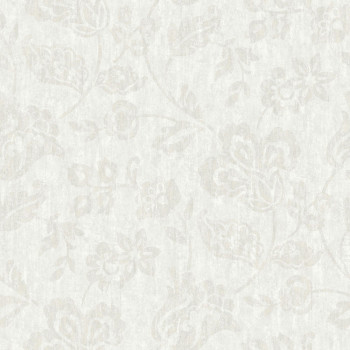 Tapete mit Vintage-Blumenmuster in Cremetönen, mit dezentem Glanz im Muster.